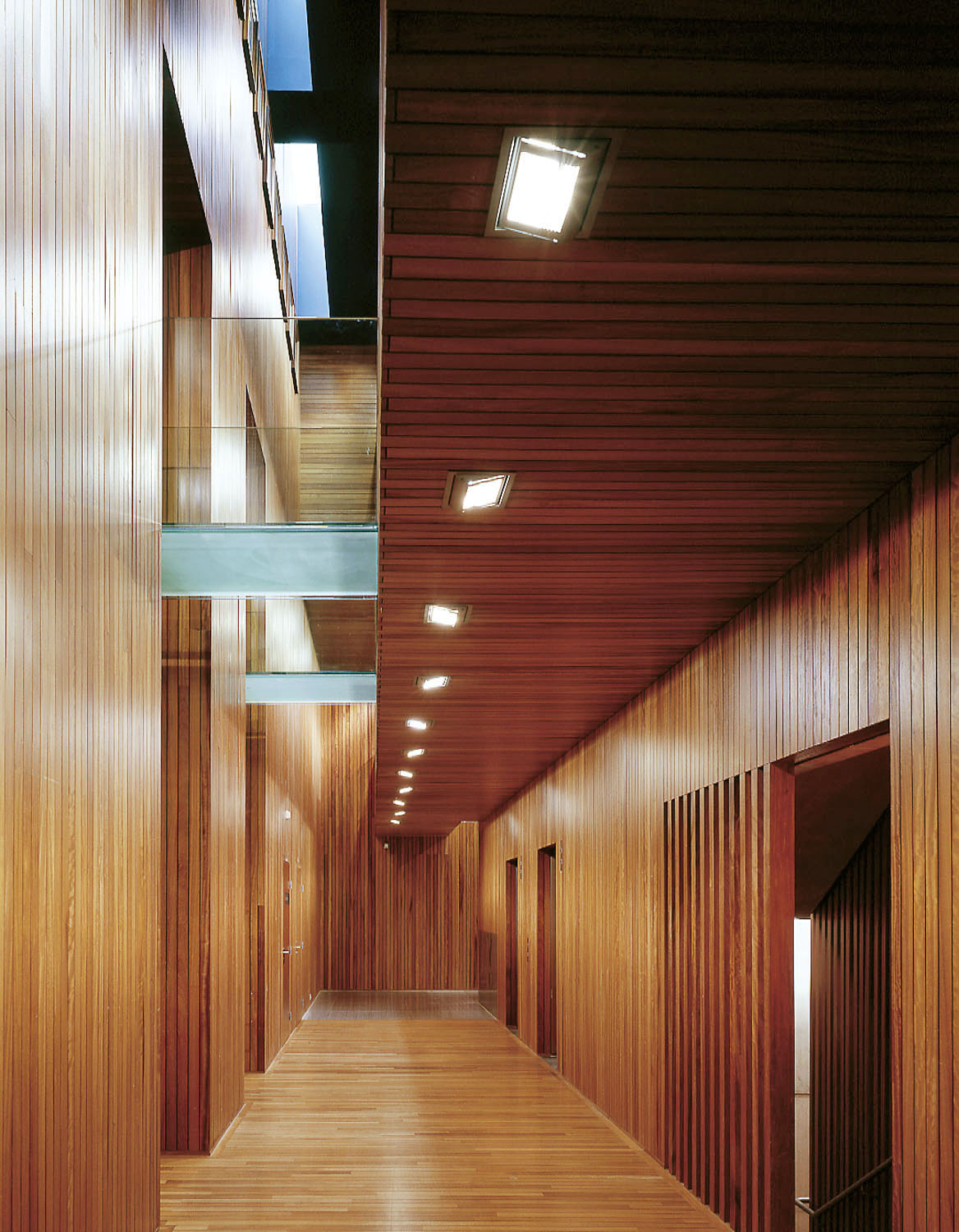 Alles wat de circa driehonderd medewerkers van de verschillende bedrijven in dit gebouw gemeen hebben – liften, restaurant, vergaderzalen – is bijeengebracht rond de met hout beklede entreehal. Hier bevindt zich ook het informatiecentrum van de Kamer van Koophandel, één van de gebruikers. Alle gemeenschappelijke onderdelen hebben een eigen sfeer. Om het onderlinge contact te bevorderen zijn op de kantoorverdiepingen vides gemaakt, zodat iedereen de boven- of benedenburen kan zien. Wie meer dan één laag huurt, kan in de vide een verbinding binnendoor maken.