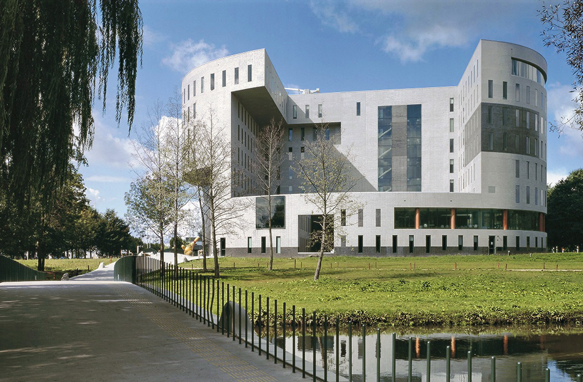 Dit kantoorgebouw markeert de overgang van de campus van de Technische Universiteit Eindhoven naar het stationsgebied. Het alzijdige gebouw is ovaal en daarmee niet uitbreidbaar, behalve door de grote gaten binnen het volume op te vullen. Het gebouw is gesitueerd in een park dat doorloopt tot aan de gevel. Parkeren vindt plaats onder het gebouw. De zilverkleurige baksteen, die speciaal voor dit project is ontwikkeld, bemiddelt tussen de metalen vliesgevels van de TU en de grijze en blauwe natuursteen die in het nabij gelegen stationsgebied voorkomt.