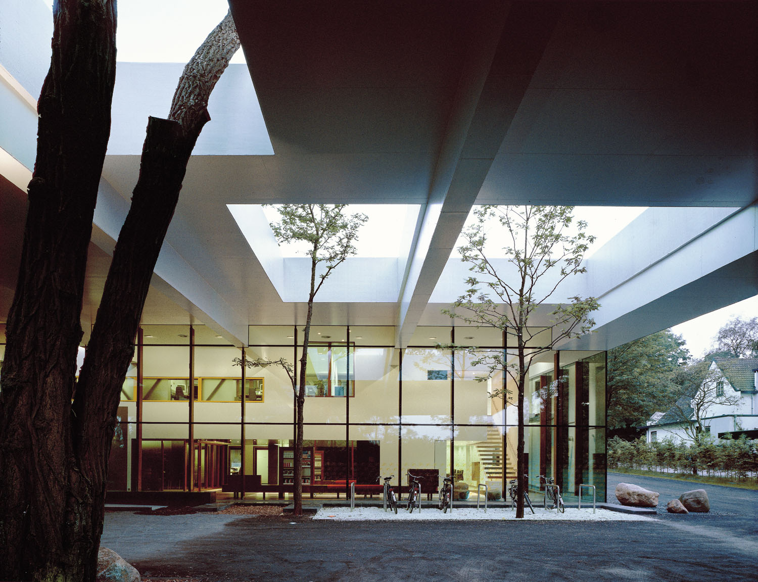Het karakter van de bestaande locatie, de relatie tussen het gebouw en de groene omgeving en de relatie van de gebruikers van het gebouw met het landschap vormen de belangrijkste thema’s van het ontwerp. Het gebouw is ontworpen om de bestaande en nieuwe bomen heen. De daklijn van het langgerekte bouwvolume volgt de, vanaf de