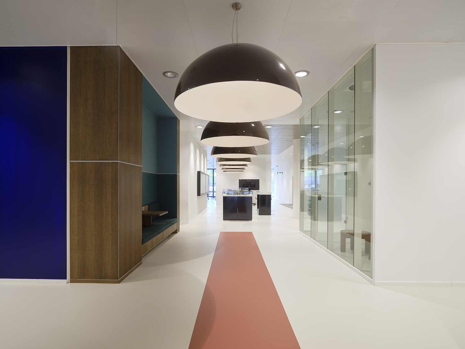 De openheid van het interieur is een weerspiegeling van deze verandering die onder meer tot een betere onderlinge communicatie en meer uitwisseling moet leiden. Er is door de openheid en transparantie op allerlei manieren visueel contact mogelijk tussen afdelingen, en door de met glas omgeven trappenhuizen ook tussen verdiepingen. Ondanks al deze openheid zit niemand er verloren bij. In de open ruimte zijn volumes geplaatst die onder meer vergader-, concentratie- en werkkamers bevatten en die niet alleen de open verdiepingen bepalen, maar ook een veelheid aan routes mogelijk maken.