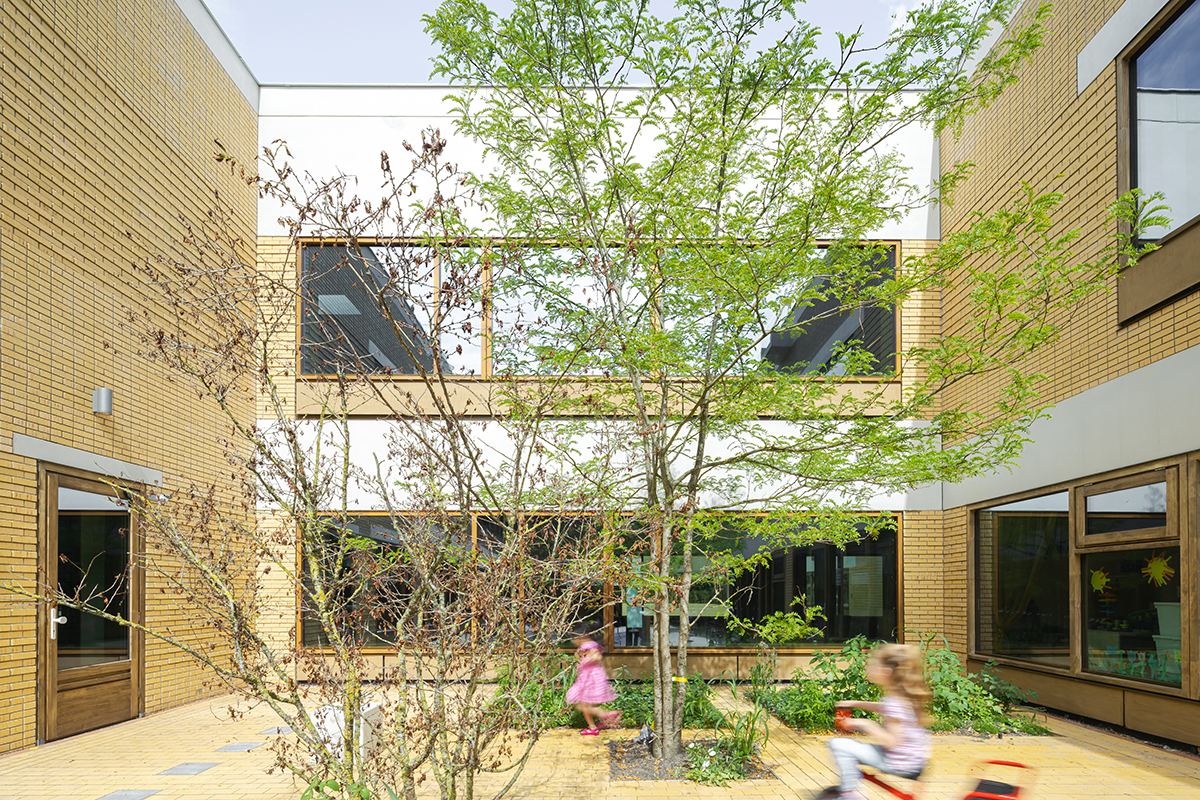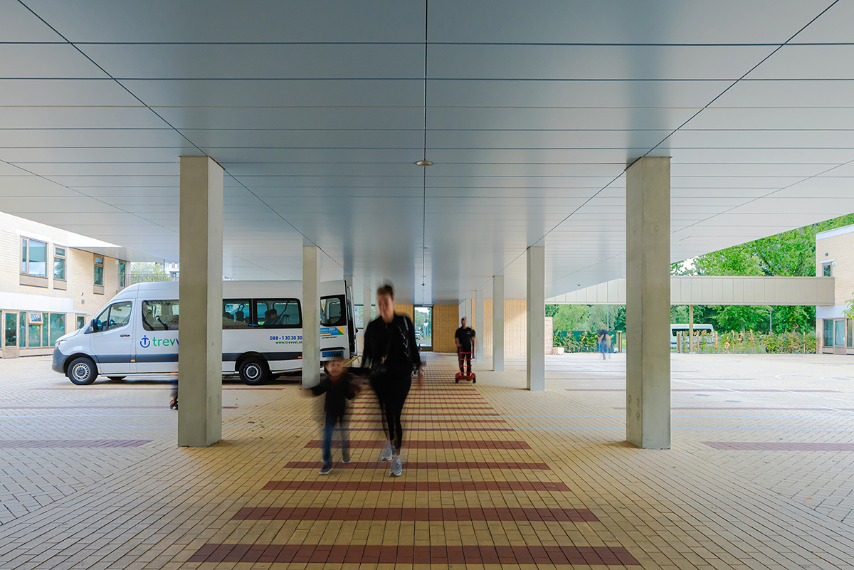De nieuwbouw is vriendelijk, karakteristiek en levendig met een rijke beleving, goede functionaliteit en passend in de omringende bestaande woonwijk. Het ROeR is bewust laag en volledig op maaiveld georganiseerd, met parkeren op het dak. Hierdoor staan toegankelijkheid, overzicht en de beleving van groen centraal. Het ROeR opent zich naar de wijk en fungeert als katalysator voor maatschappelijke verbinding, onder meer met ruimte voor sport en vrijetijdsbesteding. De intensieve samenwerking tussen onderwijs en zorg is zichtbaar in de korte looplijnen, gedeelde ruimtes en gezamenlijke organisatie. Het resultaat is een gebouw dat vanaf de allereerste dag functioneert en bijdraagt aan een inclusieve toekomst voor kinderen met een beperking.