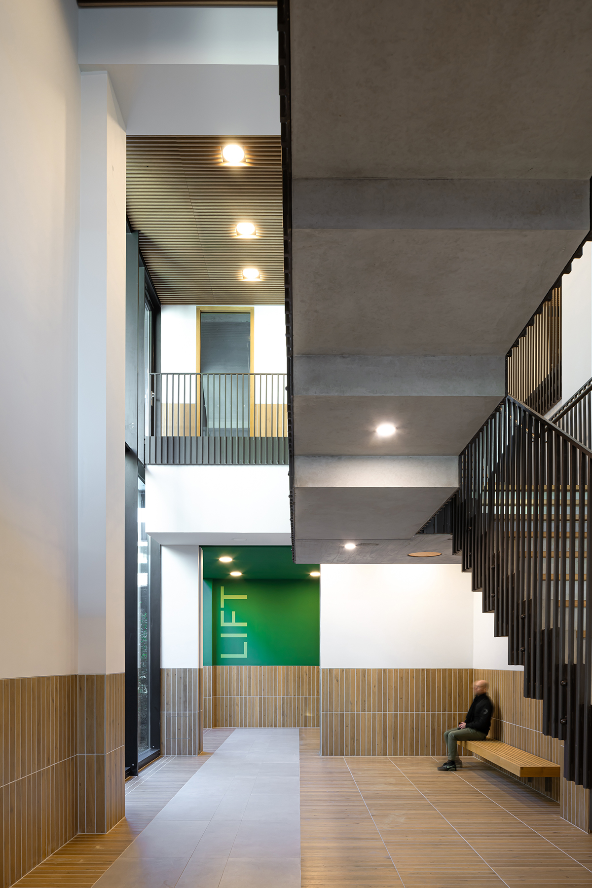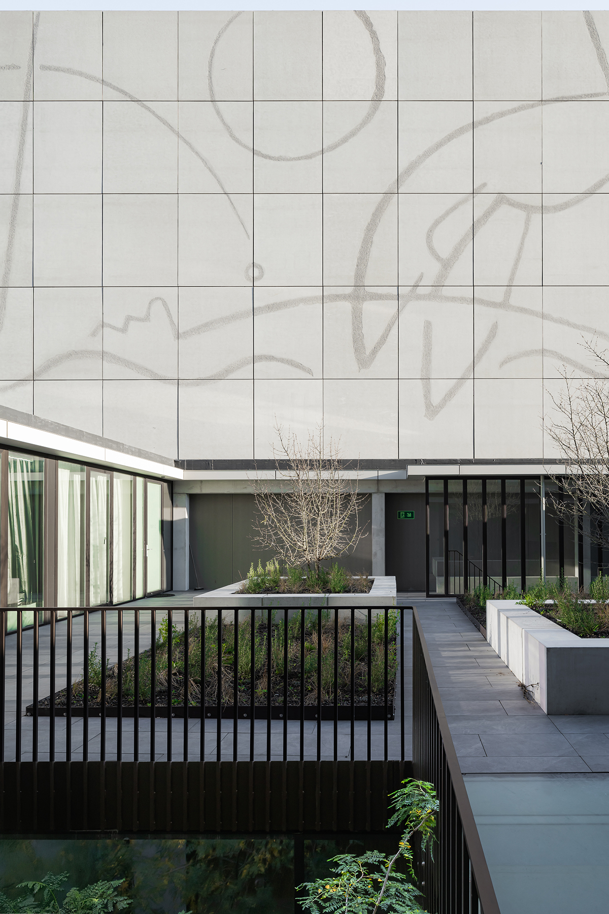 versterkt door de toepassing van een heldere plint die het hele object omvat.