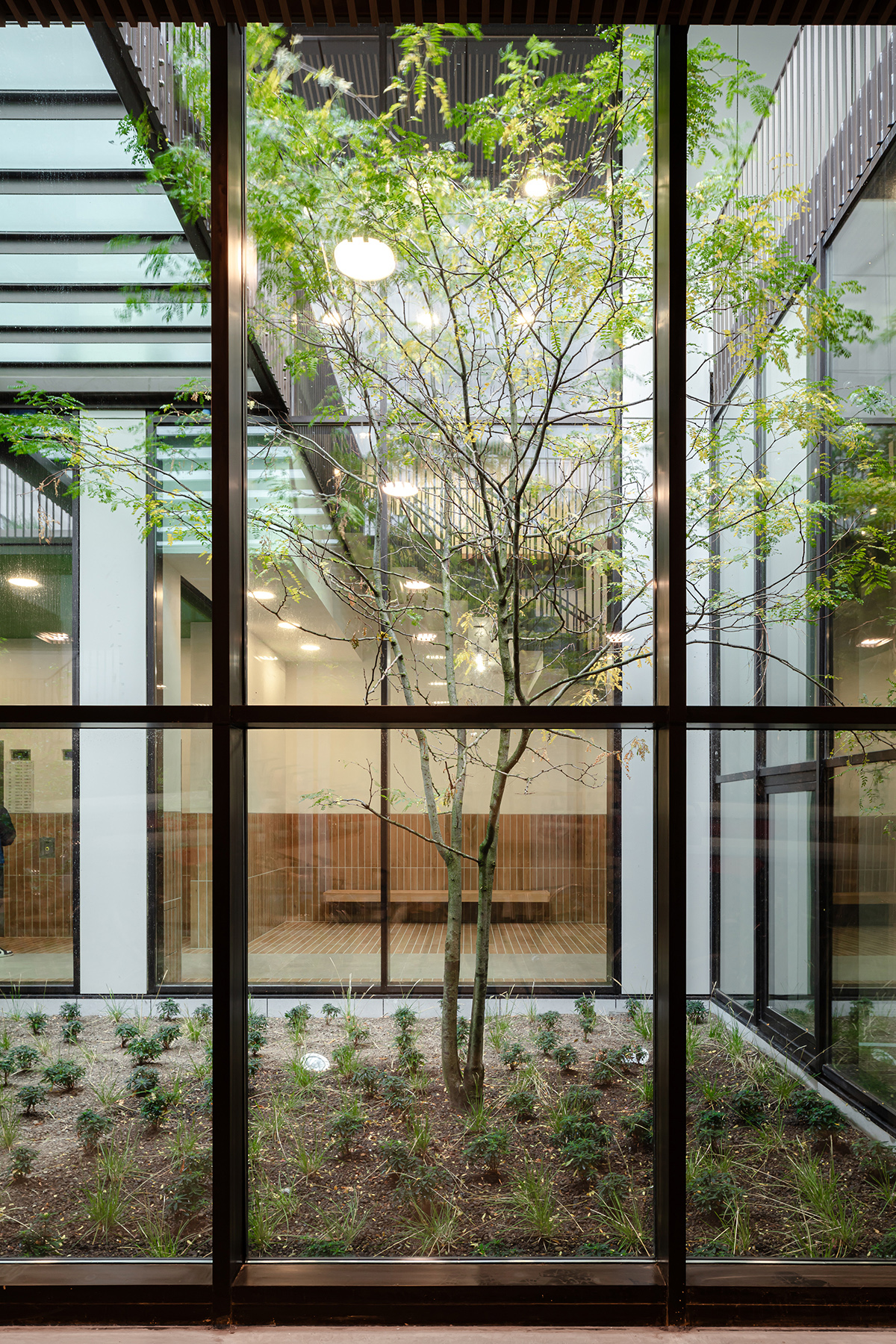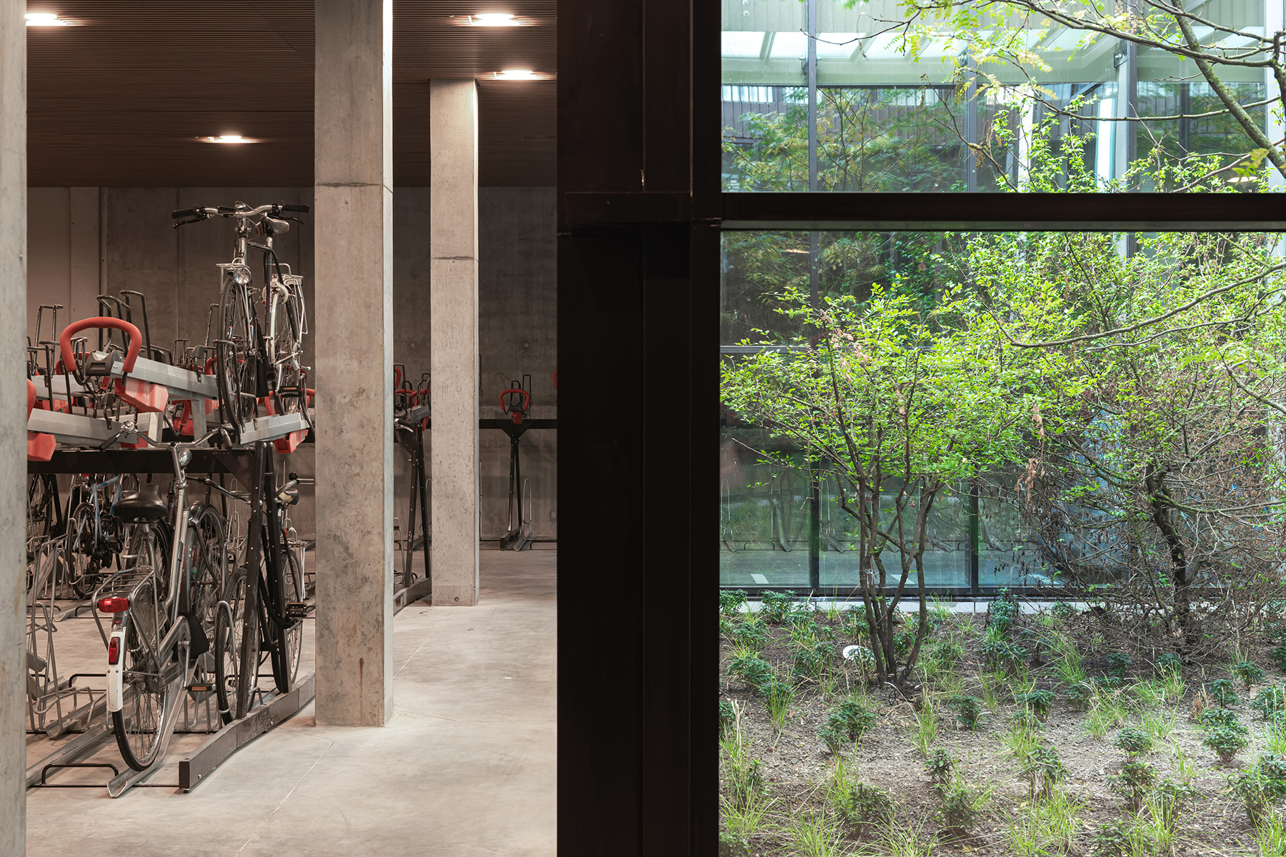één geheel. Hierdoor voegt het gebouw zich naar de omgeving en ontstaat tegelijkertijd