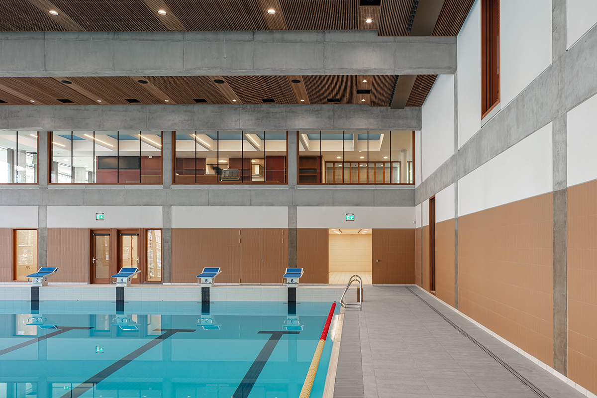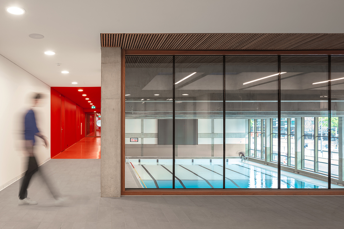 krijgen een eigen identiteit binnen een krachtig totaalbeeld. De sporthal, het zwembad en de horeca krijgen elk een eigen sfeer, identiteit en