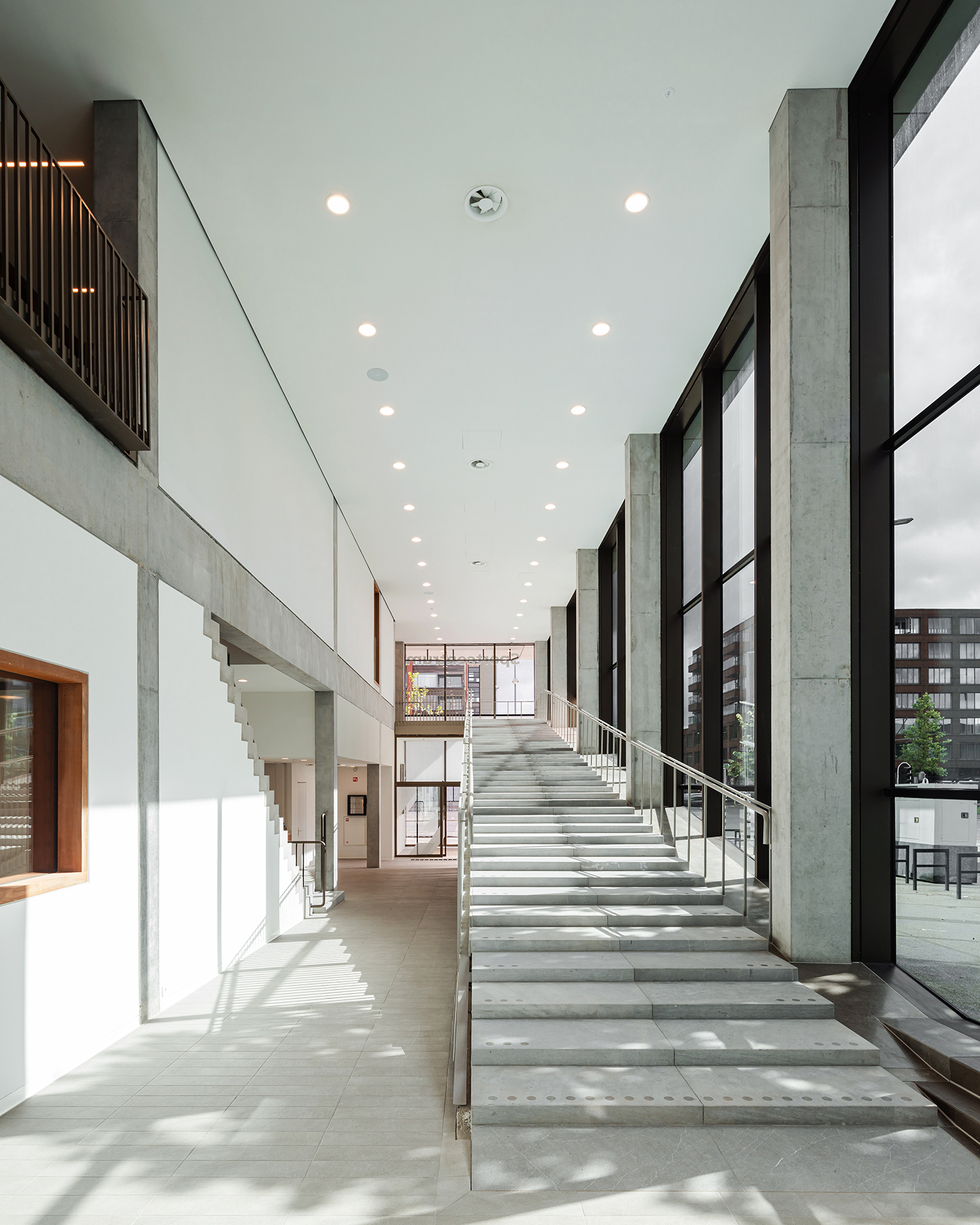 versterkt door de toepassing van een heldere plint die het hele object omvat.