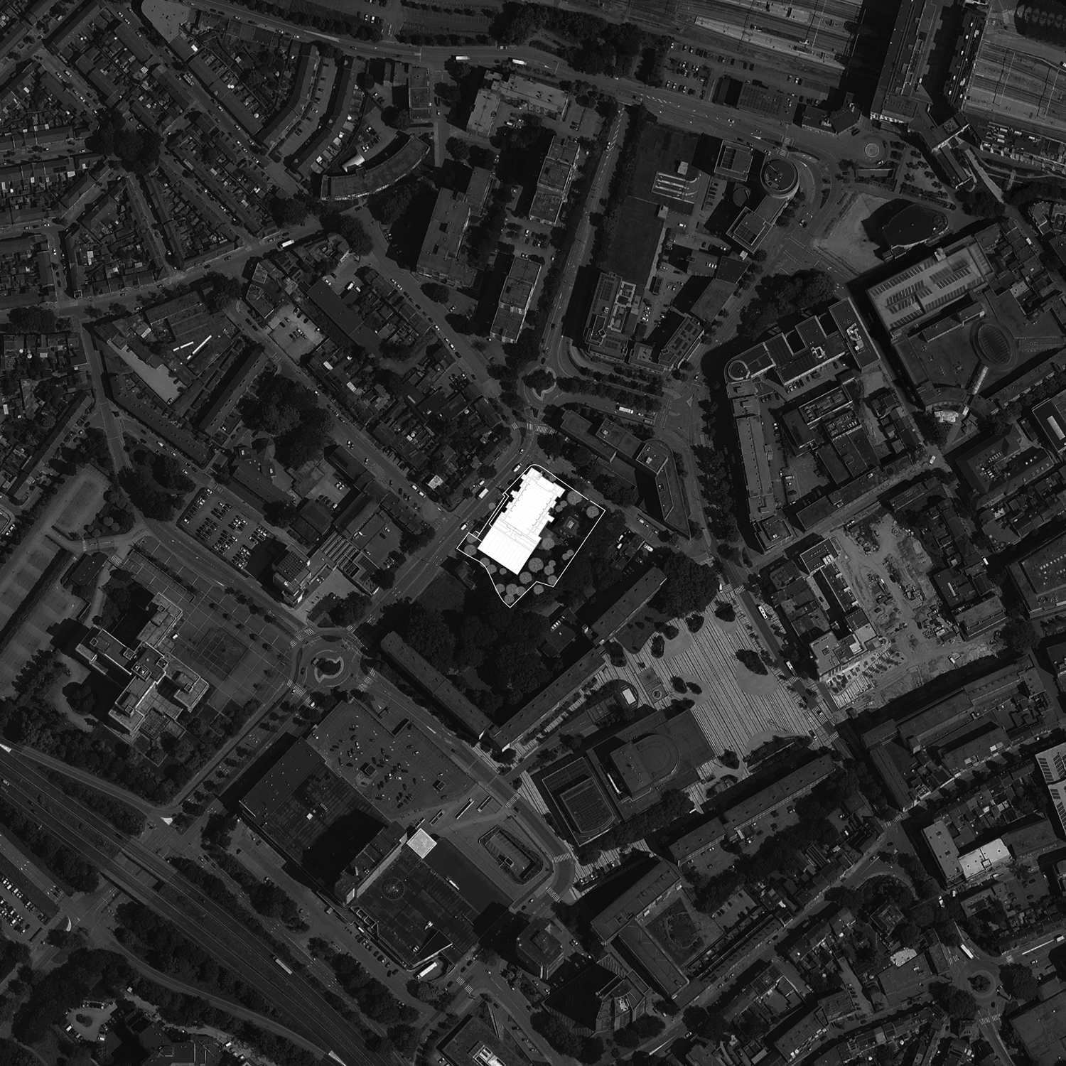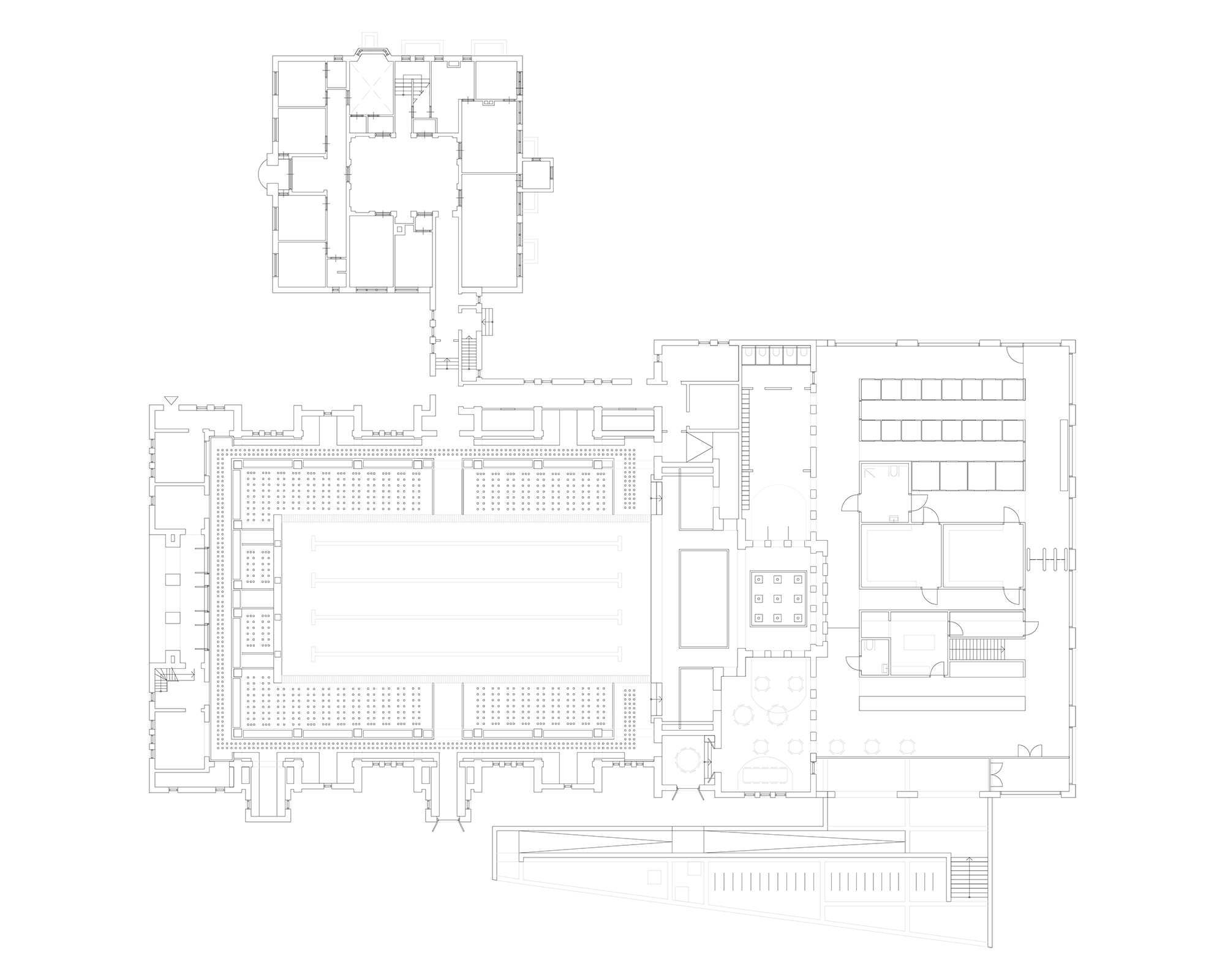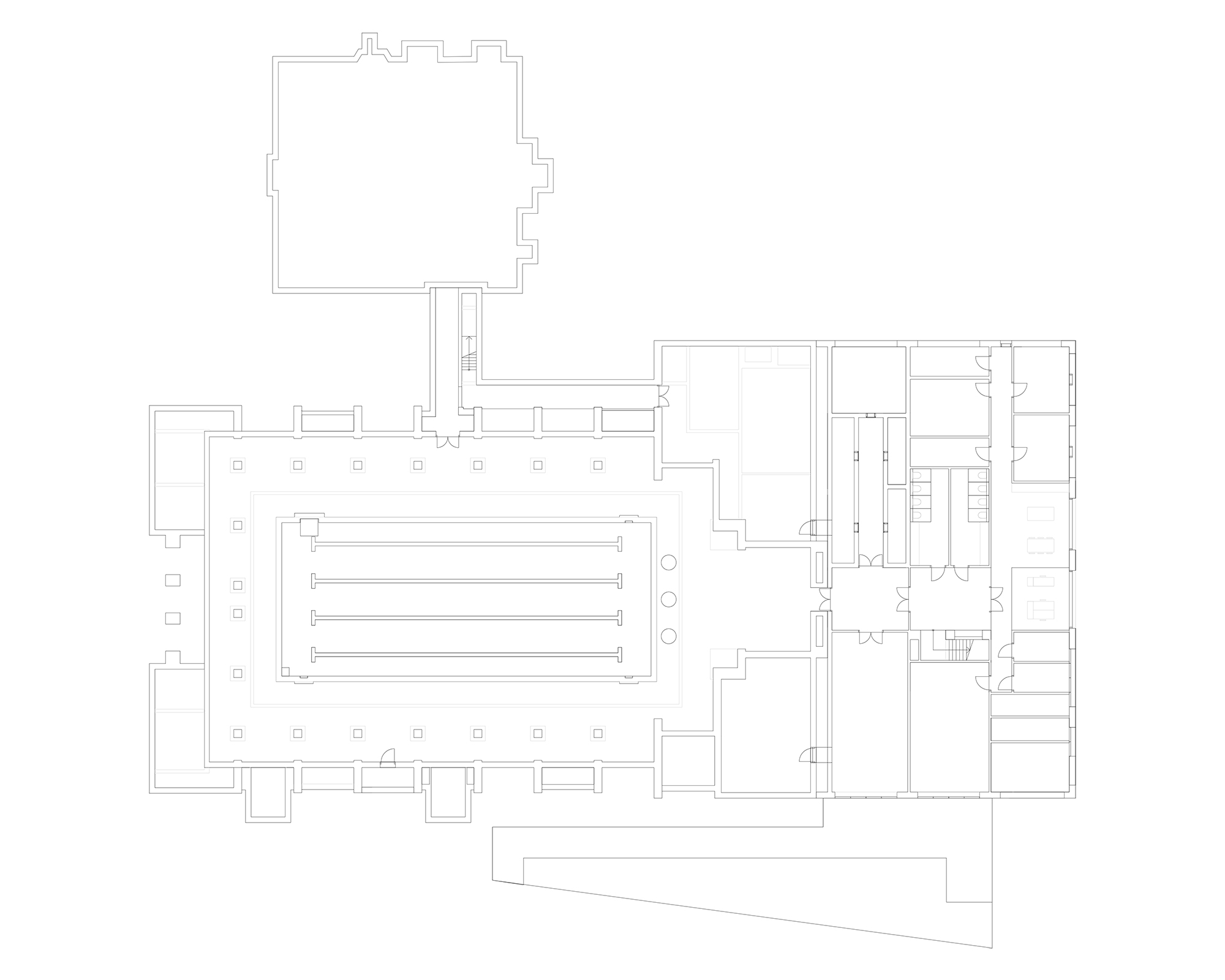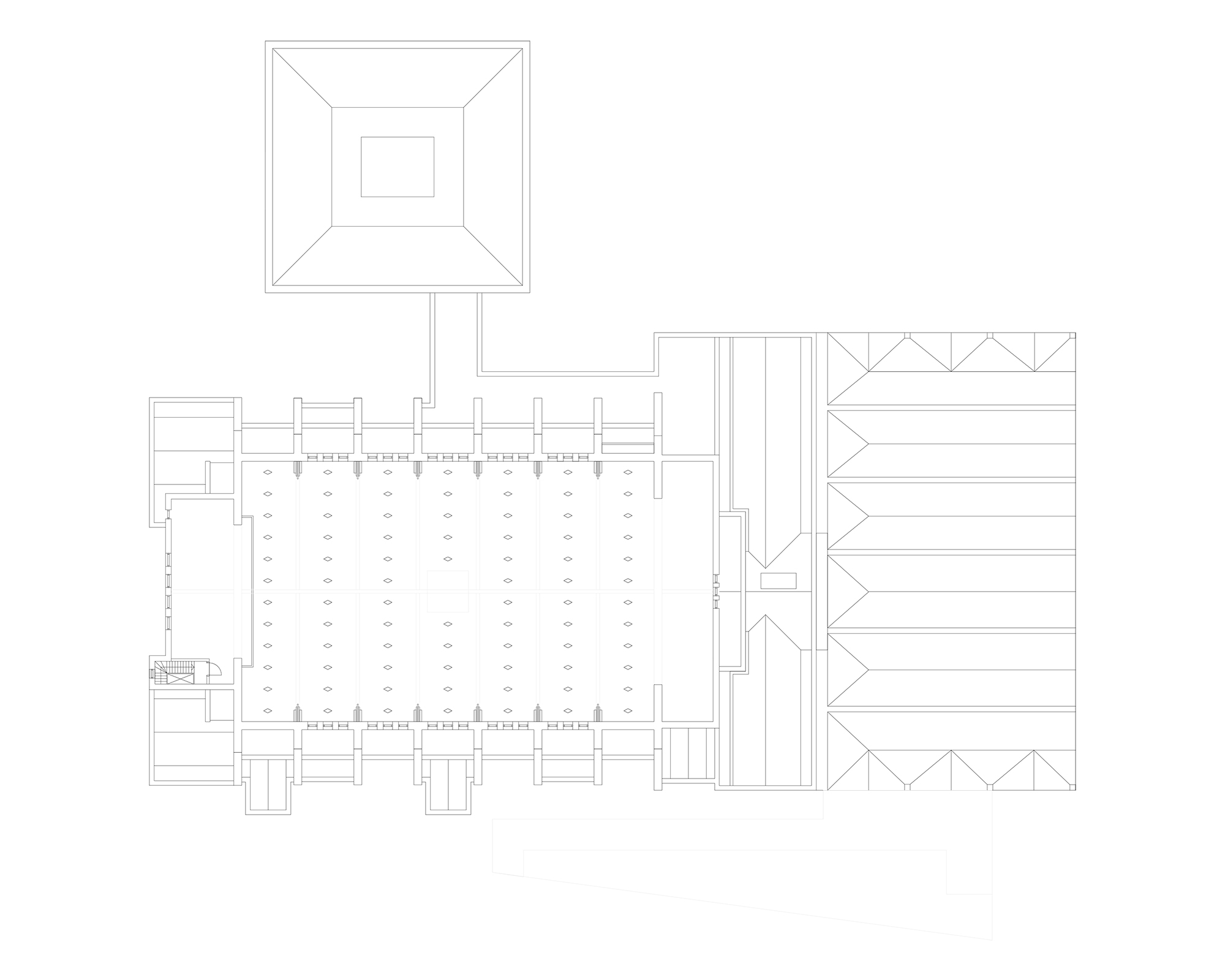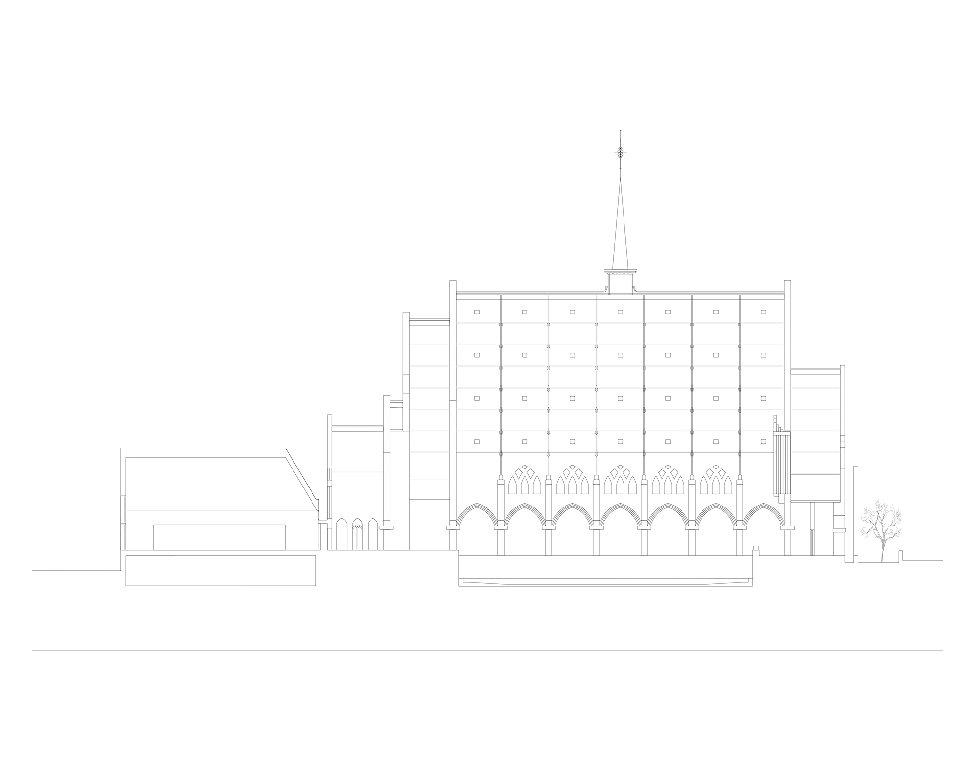 van de transeptarm wordt doorgezet rondom het nieuwe volume, in harmonie met