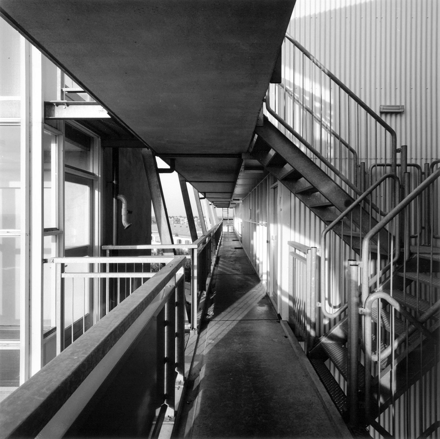 Het appartementengebouw leunt achterover waardoor alle balkons optimaal kunnen profiteren van een goede bezonning. Tegelijkertijd wordt beschutting geboden aan de galerijen aan de ontsluitingszijde. De installaties zijn op heldere wijze geplaatst direct boven elkaar in een verticale zone waardoor iedere woning een subtiel afwijkende indeling kan krijgen.