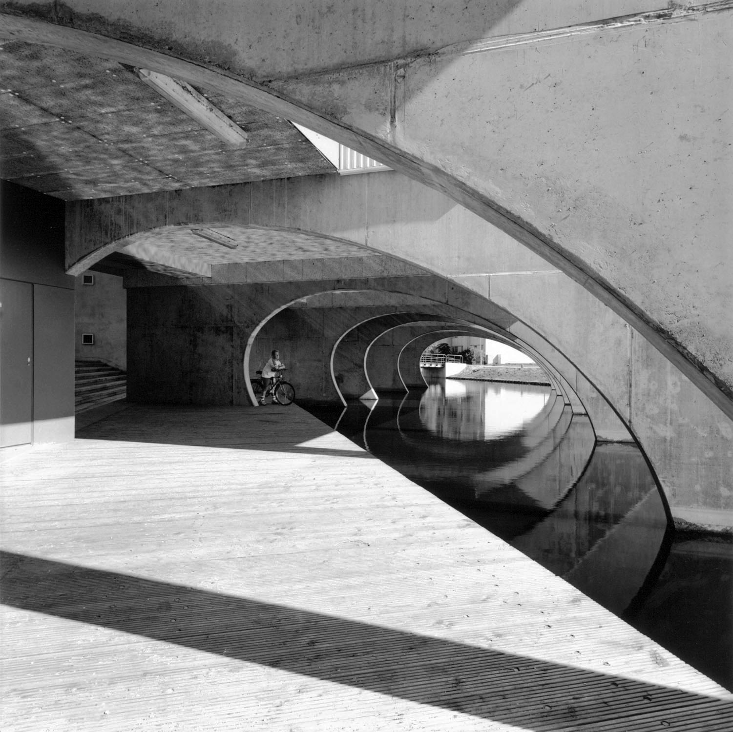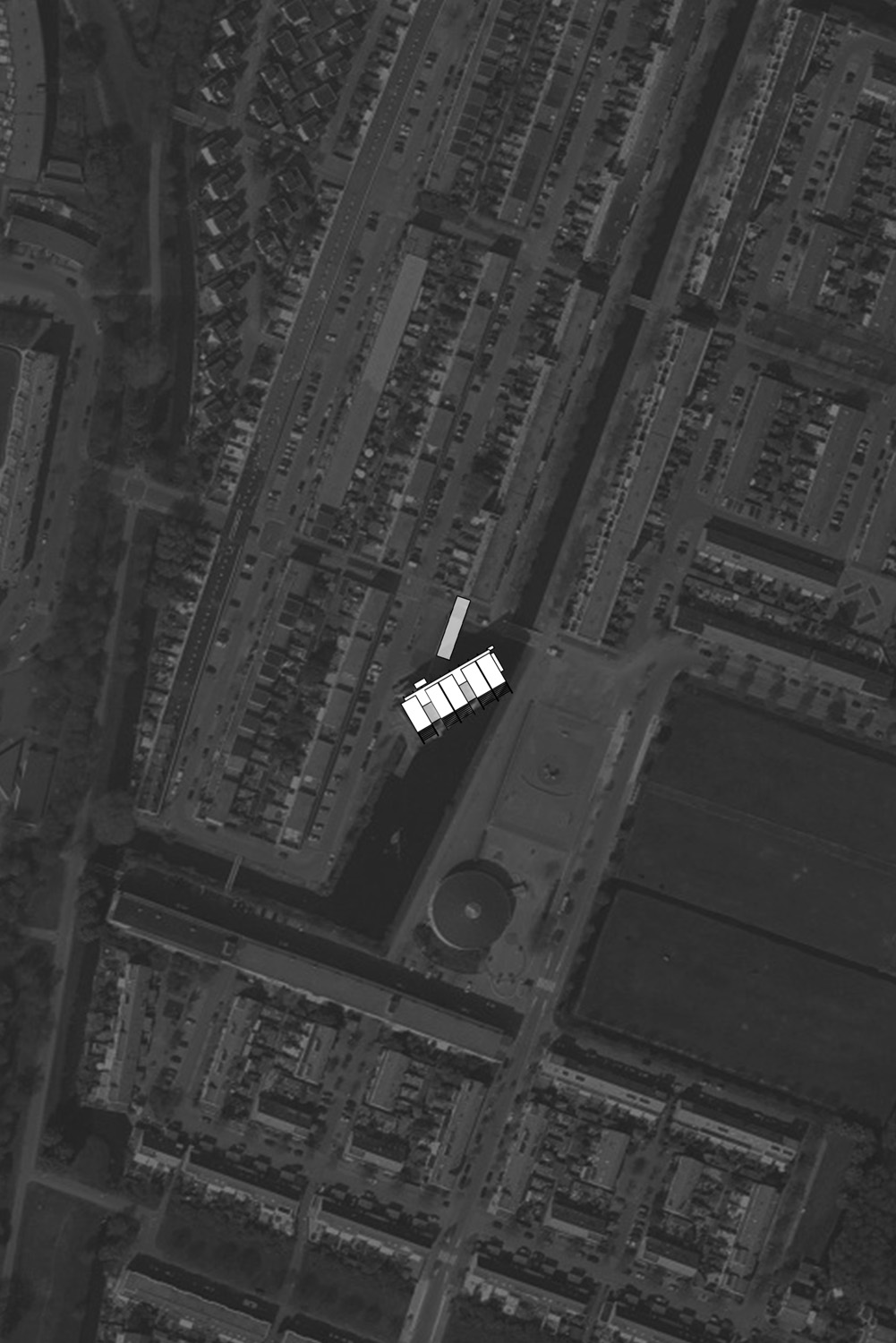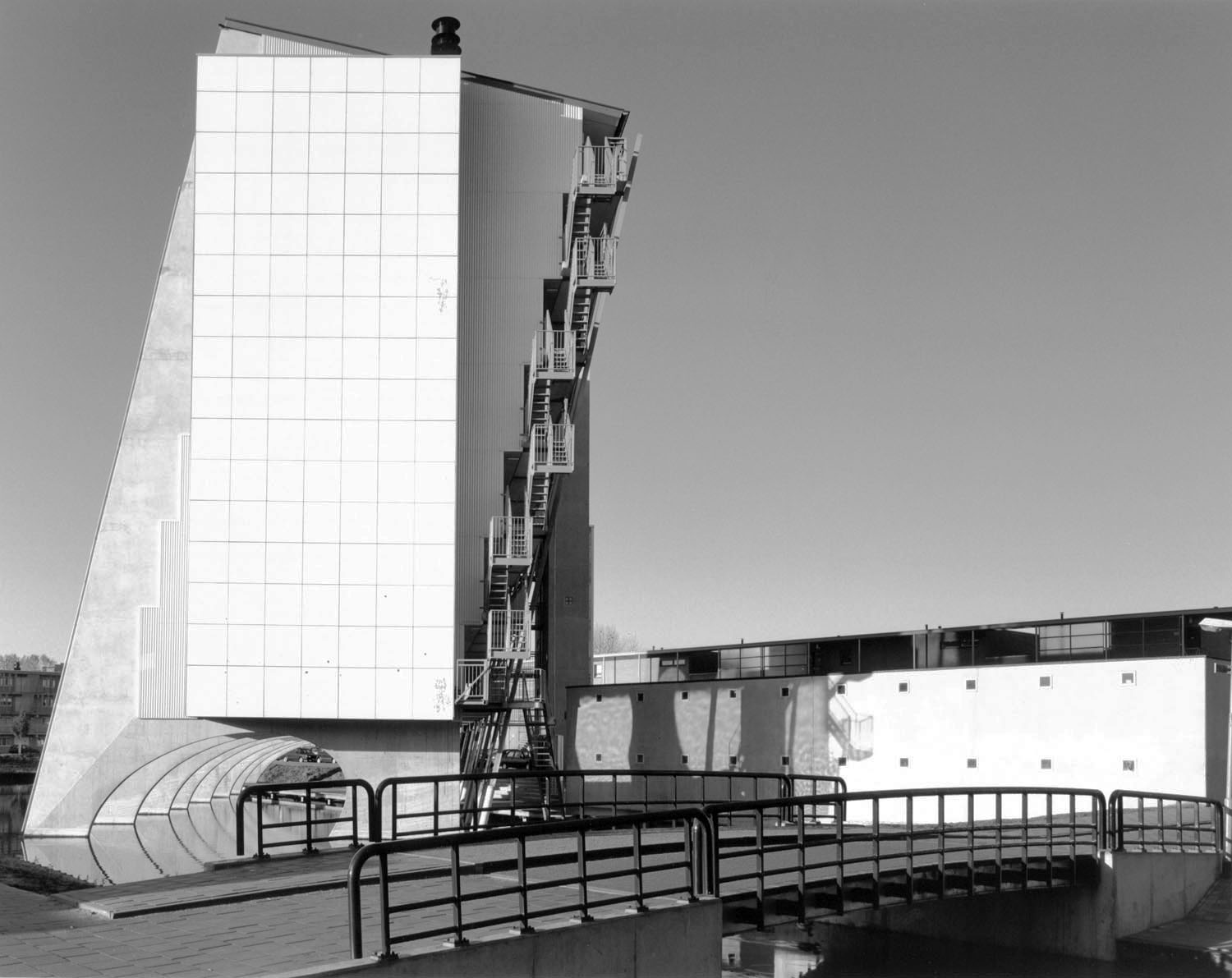 Het gebouw is los gehouden van het maaiveld zodat de omgeving goed zichtbaar blijft en vanuit de as doorzichten door het gebied mogelijk maakt. Het appartementengebouw is geplaatst boven het water en is daarmee verbonden,