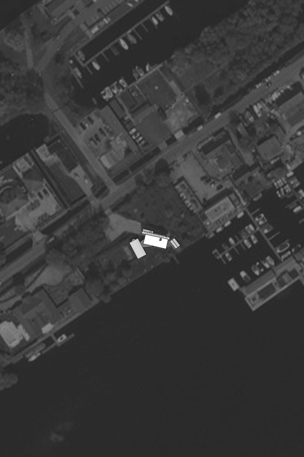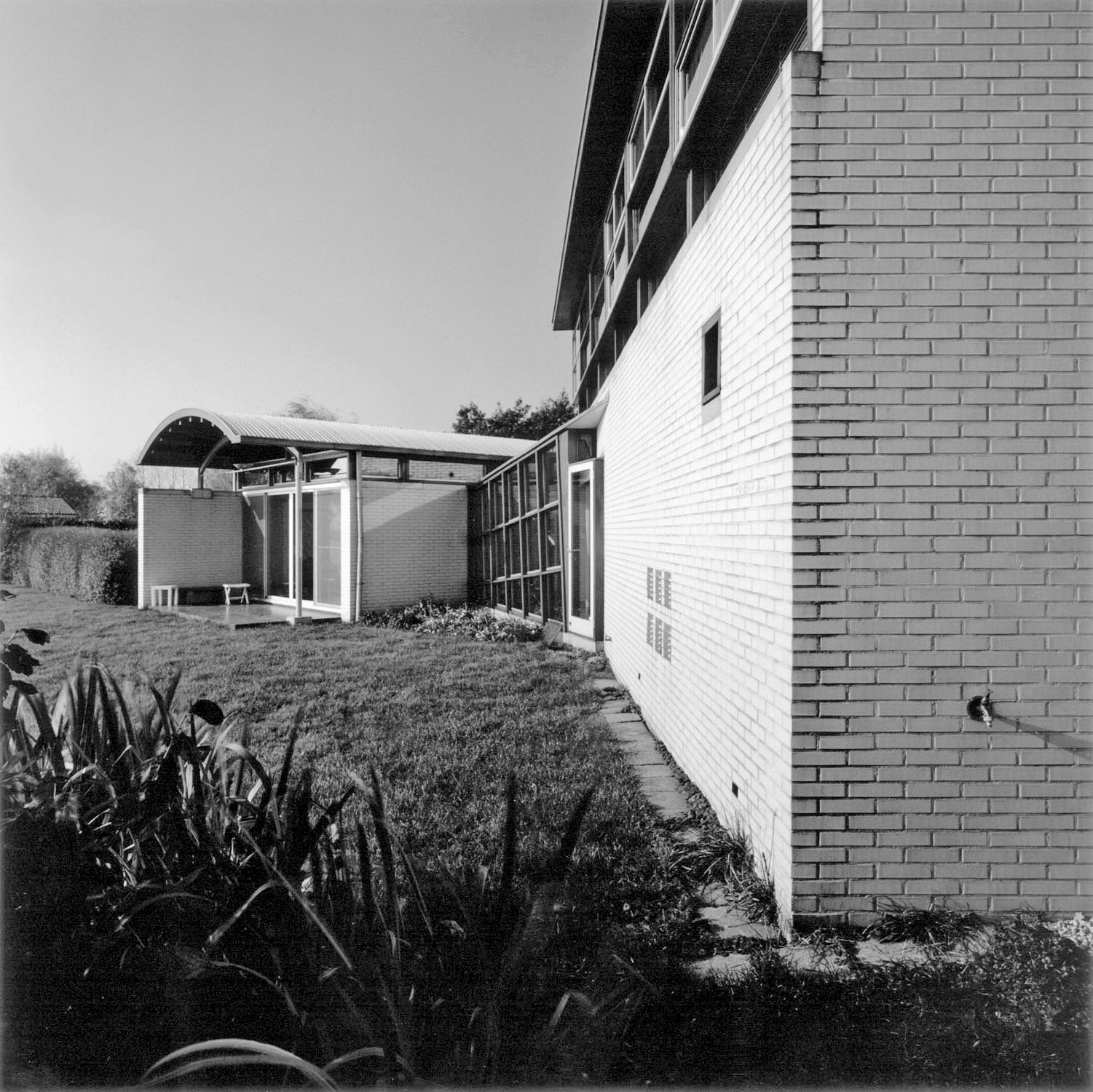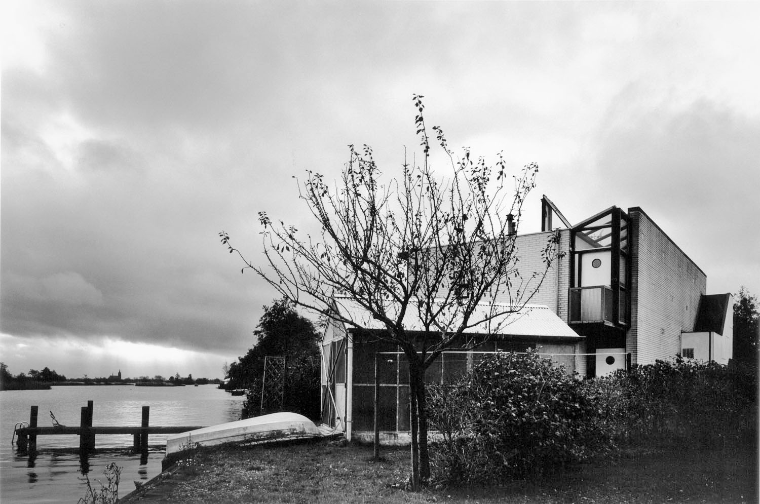Een huis aan het water met op verzoek van de opdrachtgevers een woonkamer apart van het dagelijkse huishouden. Dit vertrek, met een eigen oriƫntatie en sfeer, staat recht op het water; de rest van het huis is zo gedraaid dat het diagonaal uitzicht biedt over de plas. Het materiaalgebruik is terughoudend: de muren zijn binnen en