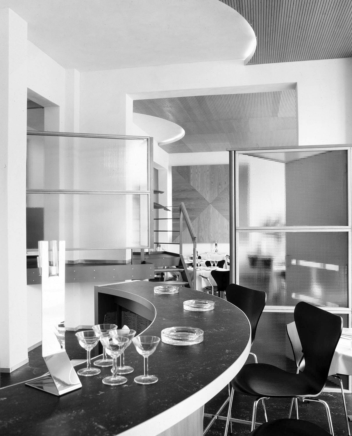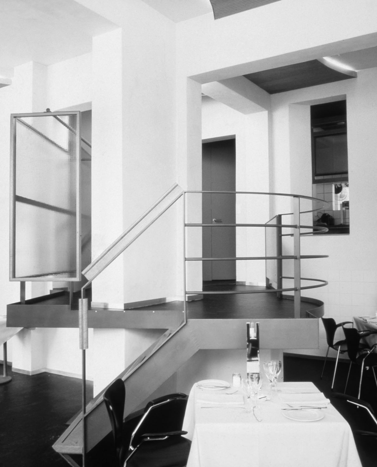 Het bestaande pand in Amsterdam bestond uit vier aparte kamers met een tussenzone. Om de vestiging van een restaurant mogelijk te maken is het gebouw gerenoveerd zodat de vier afzonderlijke