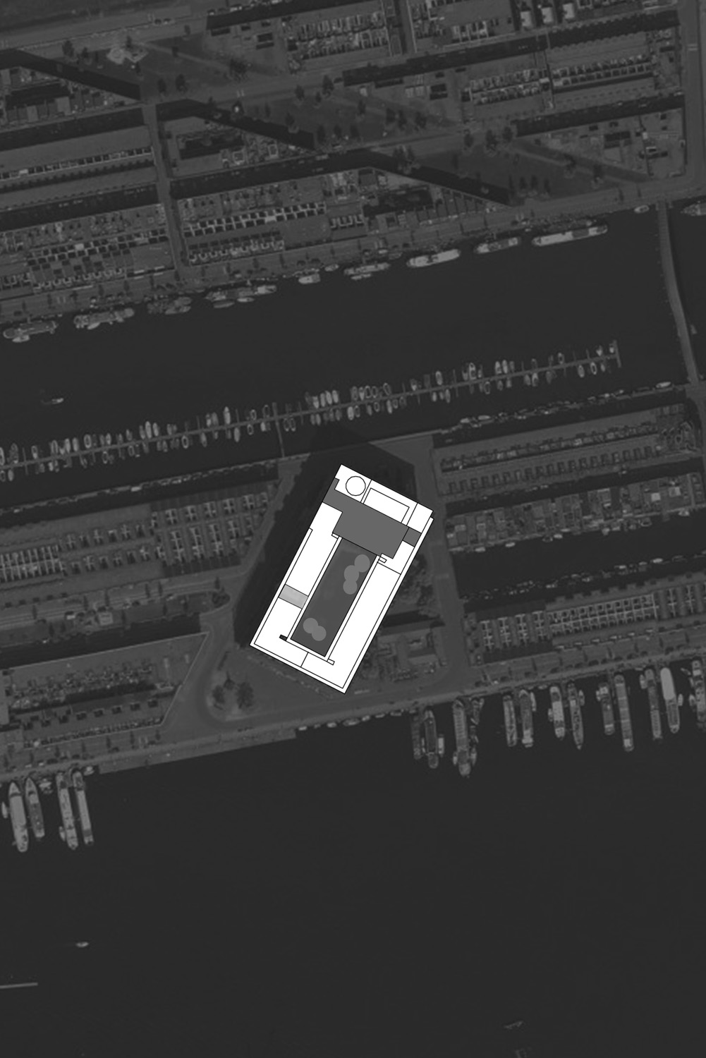 In de zee van donkere laagbouw van Borneo en Sporenburg wilde Koen van Velsen architecten dit grote woongebouw als een cruiseschip laten opdoemen. Het grote volume bevat een verscheidenheid aan gezinsappartementen, variĆ«rend van groot naar klein. De appartementen zijn gegroepeerd rond een afgesloten gemeenschappelijke binnenplaats met daarin een grote eikenboom. De appartementen hebben aan beide zijden een galerij of doorlopend balkon. De balkons kunnen worden benut als private buitenruimte maar kunnen indien