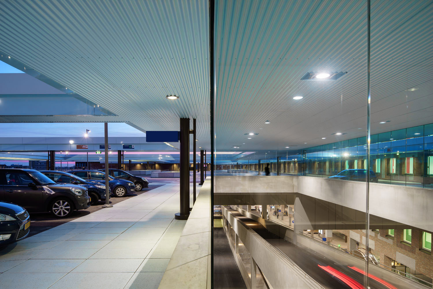 Het dak van de stationshal, boven de perrons, bestaat uit een parkeerdak met parkeervoorzieningen voor 720 auto’s voor reizigers, bewoners en (kantoor) medewerkers.