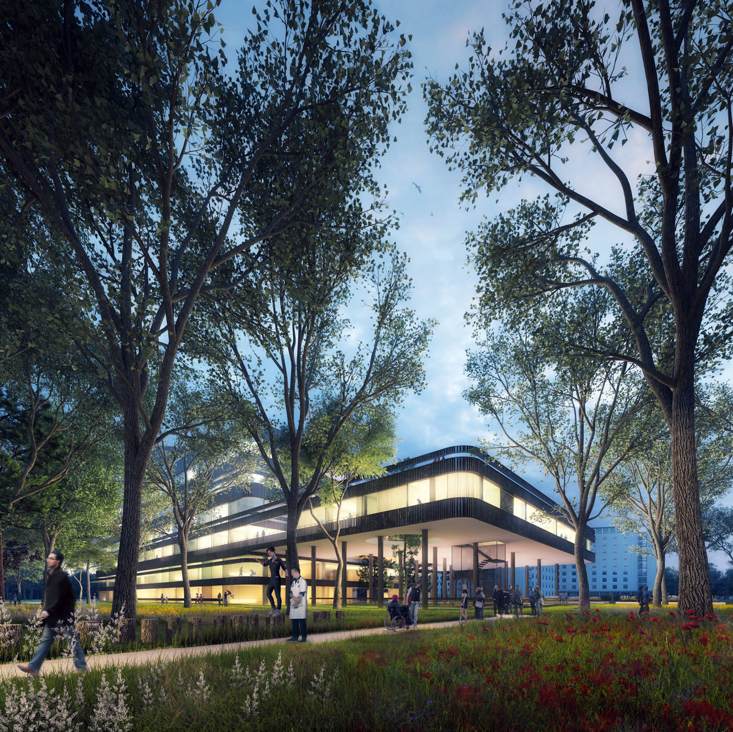 In het omringende parklandschap – eveneens ontworpen door Koen van Velsen architecten – worden het openbare karakter van het gebouw en de verbinding met de omgeving extra benadrukt en versterkt. Gebruiksfuncties zijn in het landschap opgenomen, in ‘kamers’ met ieder een eigen sfeer en verblijfskwaliteit. Het landschap heeft aan iedere zijde van het alzijdige gebouw een geheel eigen sfeer. Dit bevordert de oriëntatie en plaatsbepaling in het gebouw. Kunstobjecten in het park kunnen tevens als zitelement worden gebruikt. Hiermee worden het bestaande park, het nieuwe landschap en het gebouw tot één verbonden.